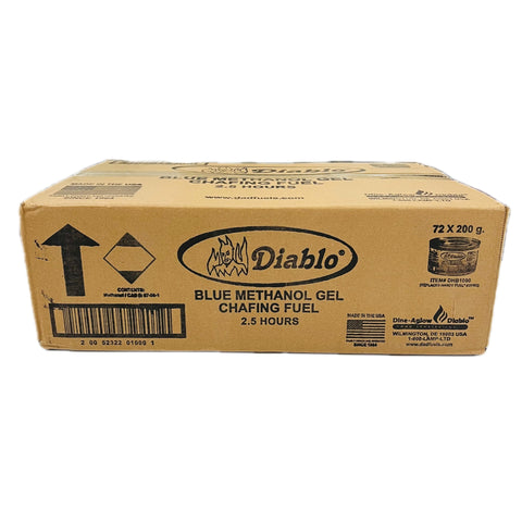 Diablo Blue Methanol Gel offers 2.5 HR burn time for 72 canisters in each 200g case. Efficient and reliable, it delivers outstanding performance for your fuel needs. Perfect for industrial and recreational use, trust in the quality and power of Diablo.