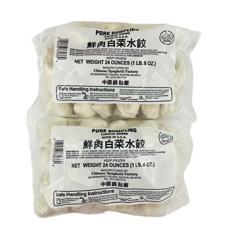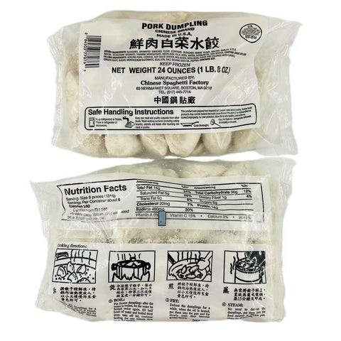Experience authentic Chinese cuisine with the Chinese Spaghetti Factory 24oz Pork Dumpling. Each package contains ready-to-cook dumplings made of premium pork for a delicious and juicy bite. Enjoy this traditional delicacy with family and friends.