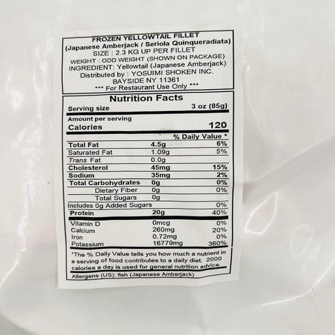 Japan Yellow Tail Hamachi Fillet 2.5-3.0kg/Size /Case