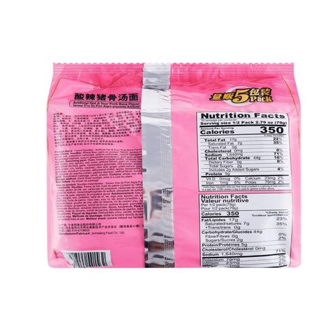 JML Sour & Hot Pork Bone Soup Flavor Noodles 158g*5*6bags/Case