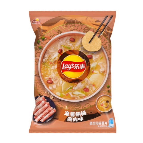 Introducing Lay's Sesame Sauce Copper Pot Shabu Shabu Flavor! Each 70g pack contains an unbeatable combination of sesame sauce and copper pot flavors. Try it and experience the perfect balance of flavor and texture in every bite. Enjoy this delicious snack today!