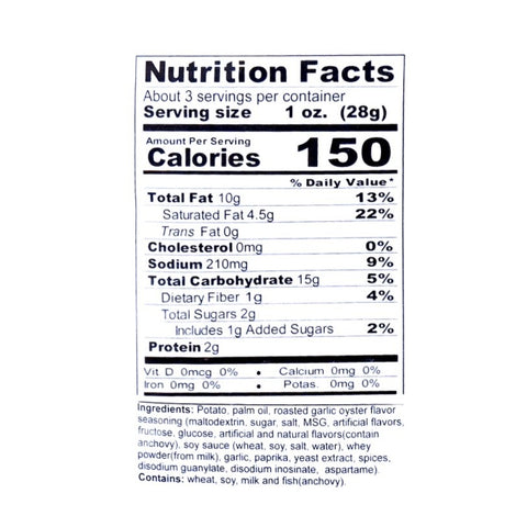 Discover a vibrant world of flavor in every bite of Lay’s Potato Chips Garlic Roasted Oyster. Carefully crafted with roasted oysters and a hint of garlic, these premium chips offer an exquisite balance of crunchiness and flavor. Rejoice in the artistry of premium snacking with a sophisticated and exclusive crunch.
