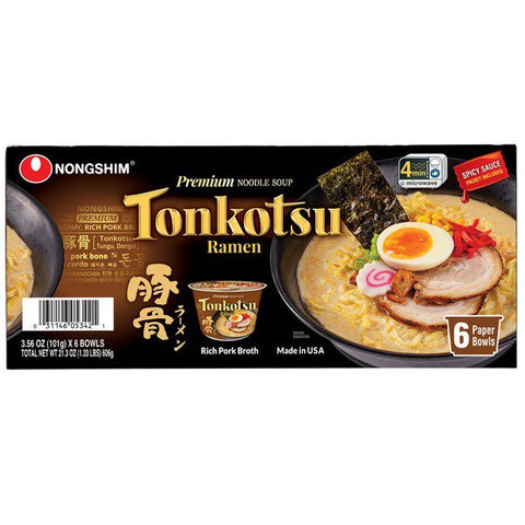 Experience the richness of ramen with Nongshim Tonkotsu Ramen Bowl. This 6*3.56oz bowl features Nongshim's signature Tonkotsu pork bone broth, with added noodles for a delicious and filling meal. Enjoy a delightful flavor that can only be described as ramen heaven!