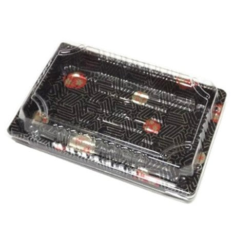 Keep your sushi trays organized with the TZ-010 Sushi Tray. It measures 185*130*20mm, making it the ideal size for holding standard sushi rolls. This tray is made from durable plastic material, and comes in a package of 400 pieces per case.